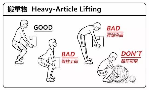 之所以這麼做,是因為我們日常對腿的使用,是好過腰部的,所以在搬東西的時候能夠有更好的發力。