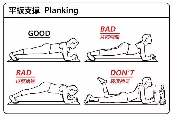 下次做平板支撐的時候,側面拍照記錄一下,看看自己是不是肩膀、臀部、下肢在一條直線上。