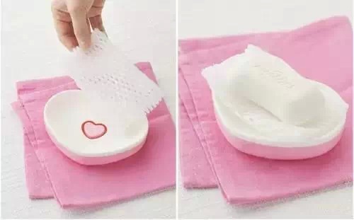 把這層網格直接放在皂盒上,它可以吸附香皂上的水分,香皂什麼時候用起來,都是很乾爽的哦。