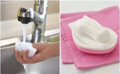 擦過水池的網格,如果沒有破損,用清水沖淨,擠幹水分後,再次放入皂盒使用。