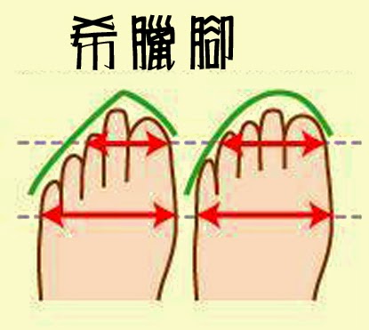 希臘諸神雕像也屬於這種腳型。
